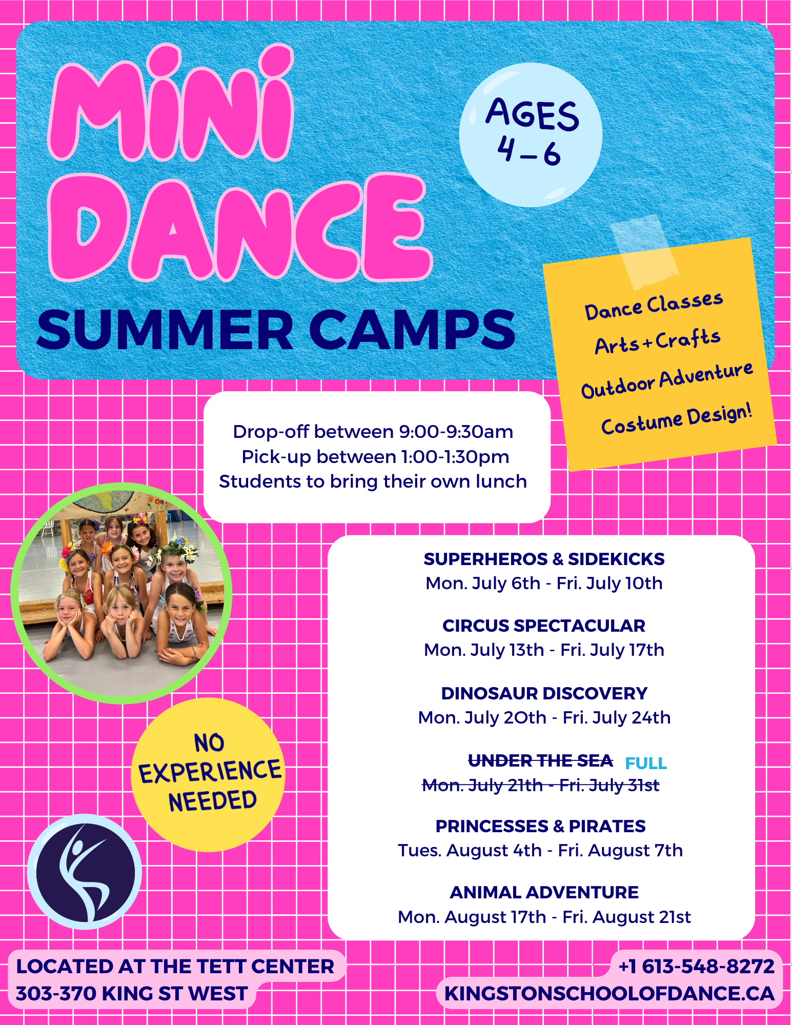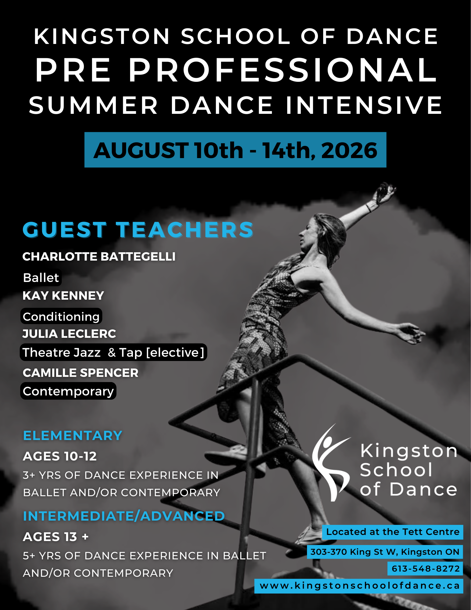 Summer Programming 2026 Pre-Professional Summer Intensive Monday August 10th - Friday August 14th 2026 Learn more Our YOUTH and MINI Summer Camps are BACK!Spots limited - Sign up today! REGISTER TODAY ADULT Summer Schedule Coming Soon!